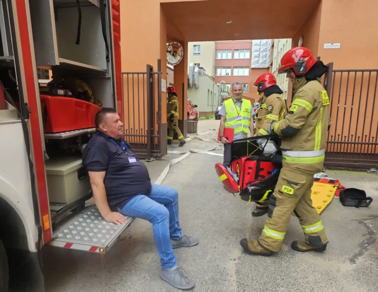 Ćwiczenia z udziałem Komendy Miejskiej Państwowej Straży Pożarnej w Olsztynie pokazały, że współpraca służb ratunkowych i personelu medycznego może przebiegać sprawnie i skutecznie – co w sytuacji zagrożenia życia ma kluczowe znaczenie.